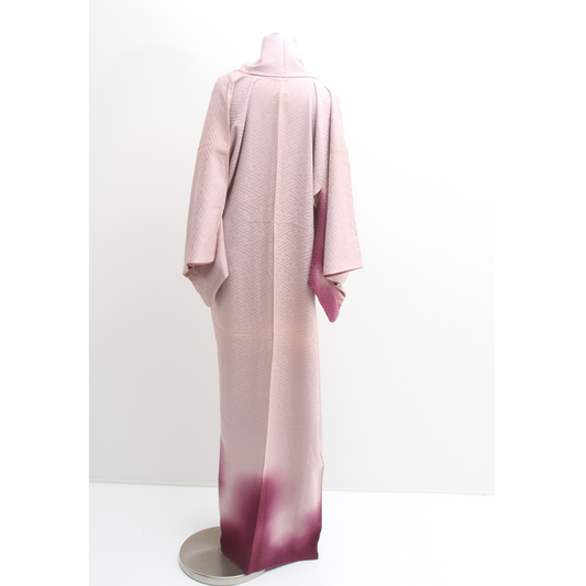 Pre-Owned Silk Tsukesage – Soft Pink Gradient with Purple Ombre Hem
