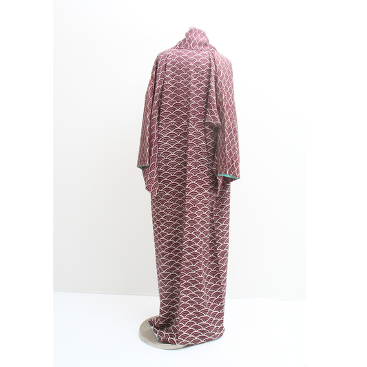 Pre-Owned Silk Komon Kimono with Deep Plum Seigaiha Pattern