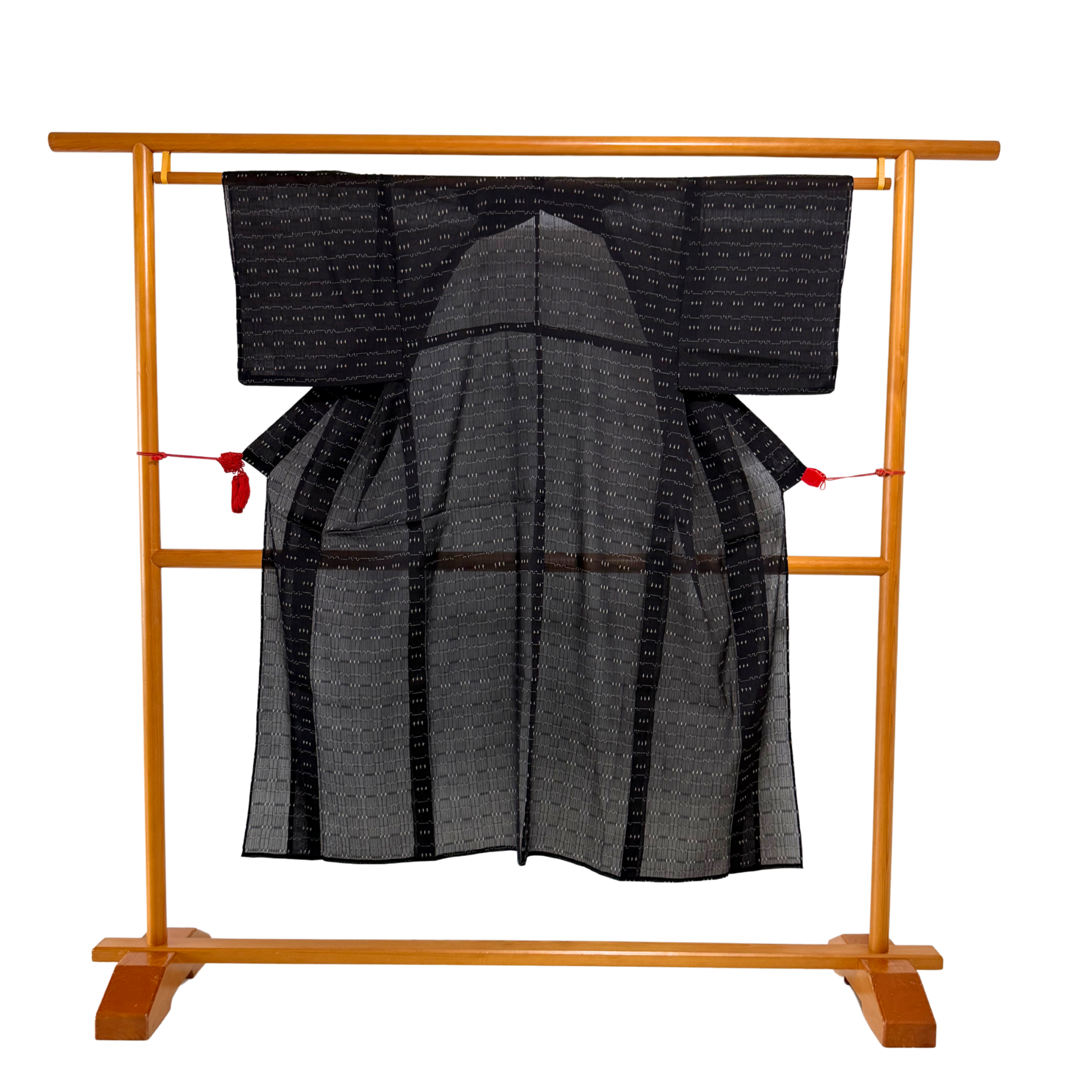 Pre-Owned Black Asa Omeshiji Summer Kimono – Sheer Woven Pattern