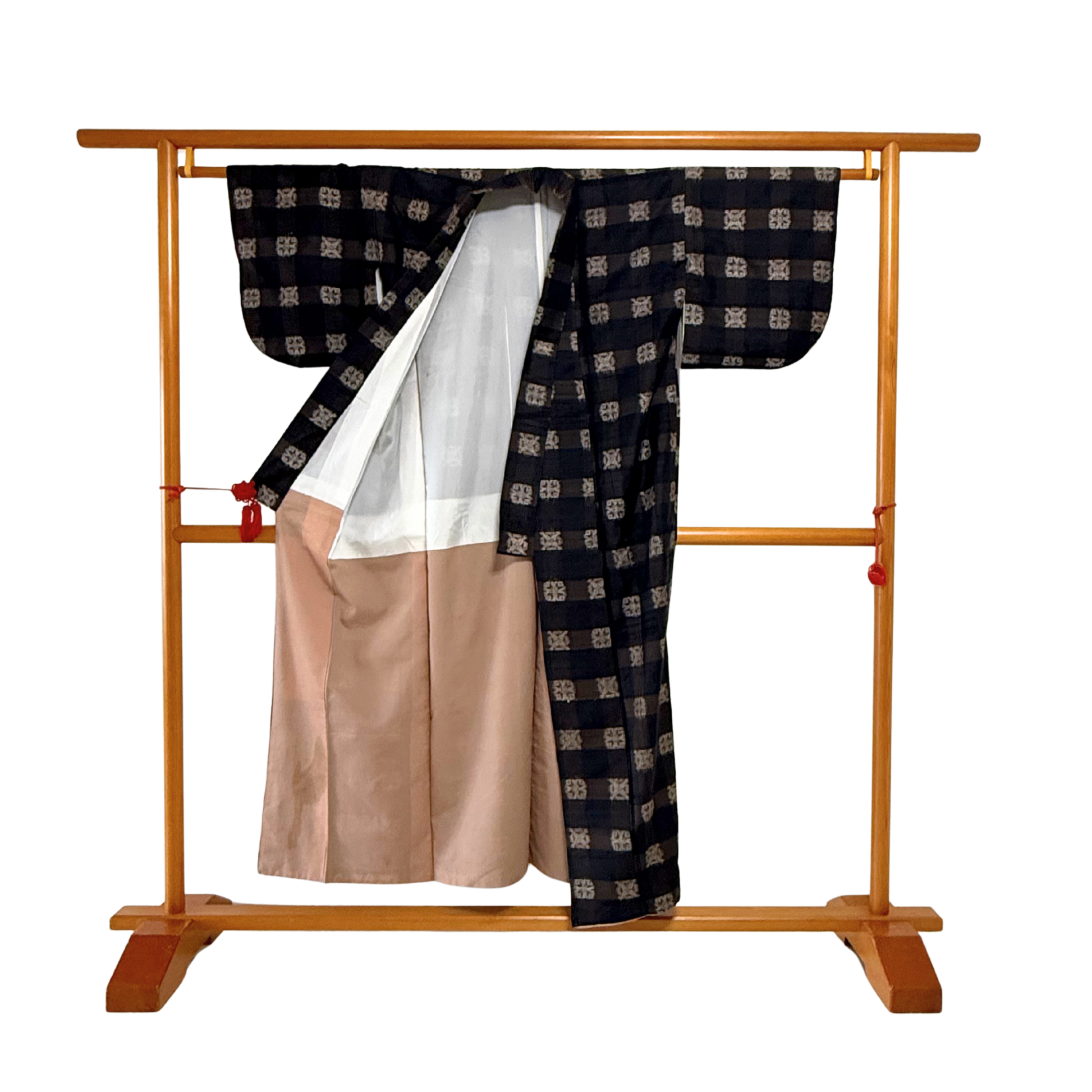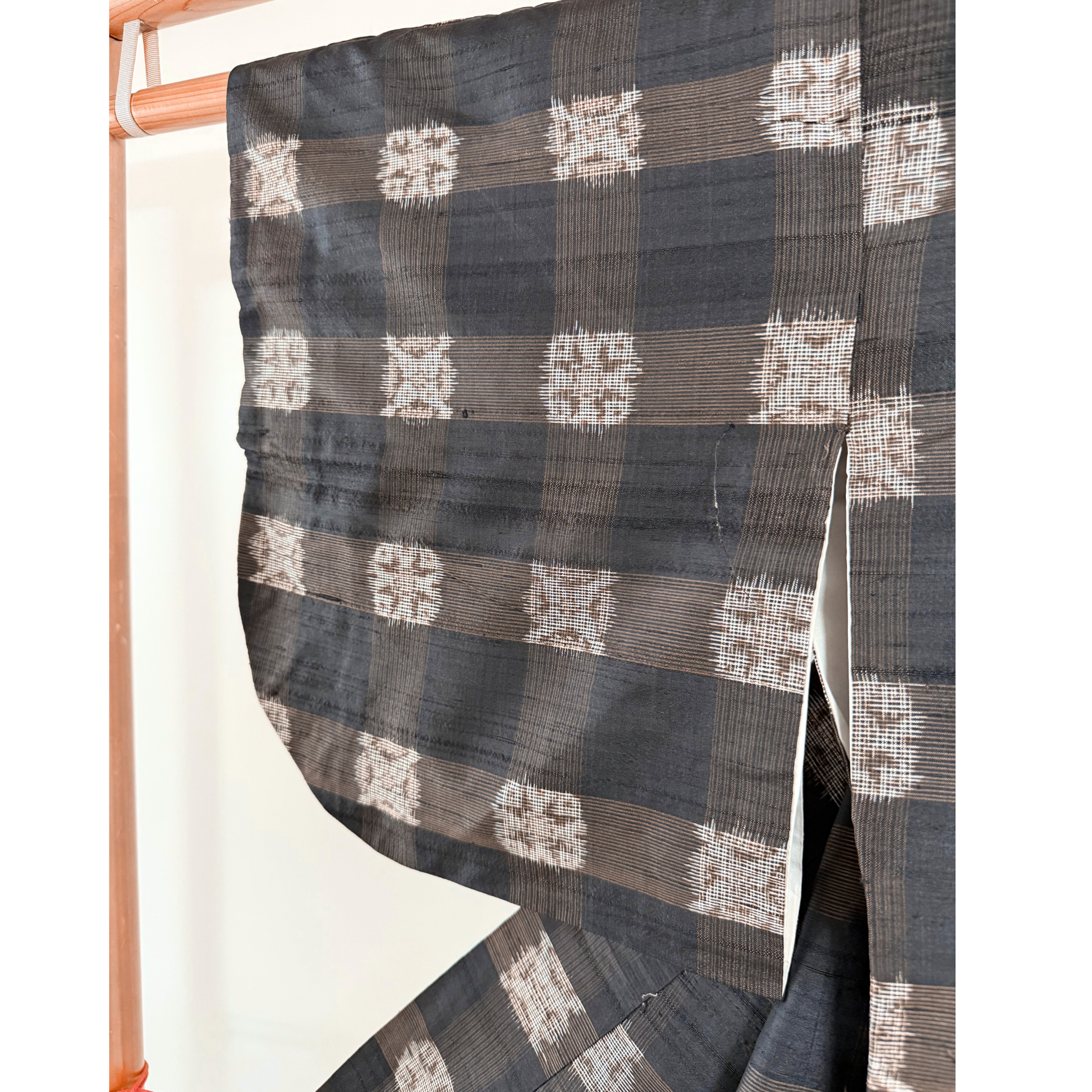 Pre-Owned Tsumugi Silk Kimono – Classic Checked Kasuri Pattern